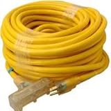 Coleman Cable 4389 10/3 SJTW Tri-Source Extension Cord with Lighted End, Yellow, 100-Foot